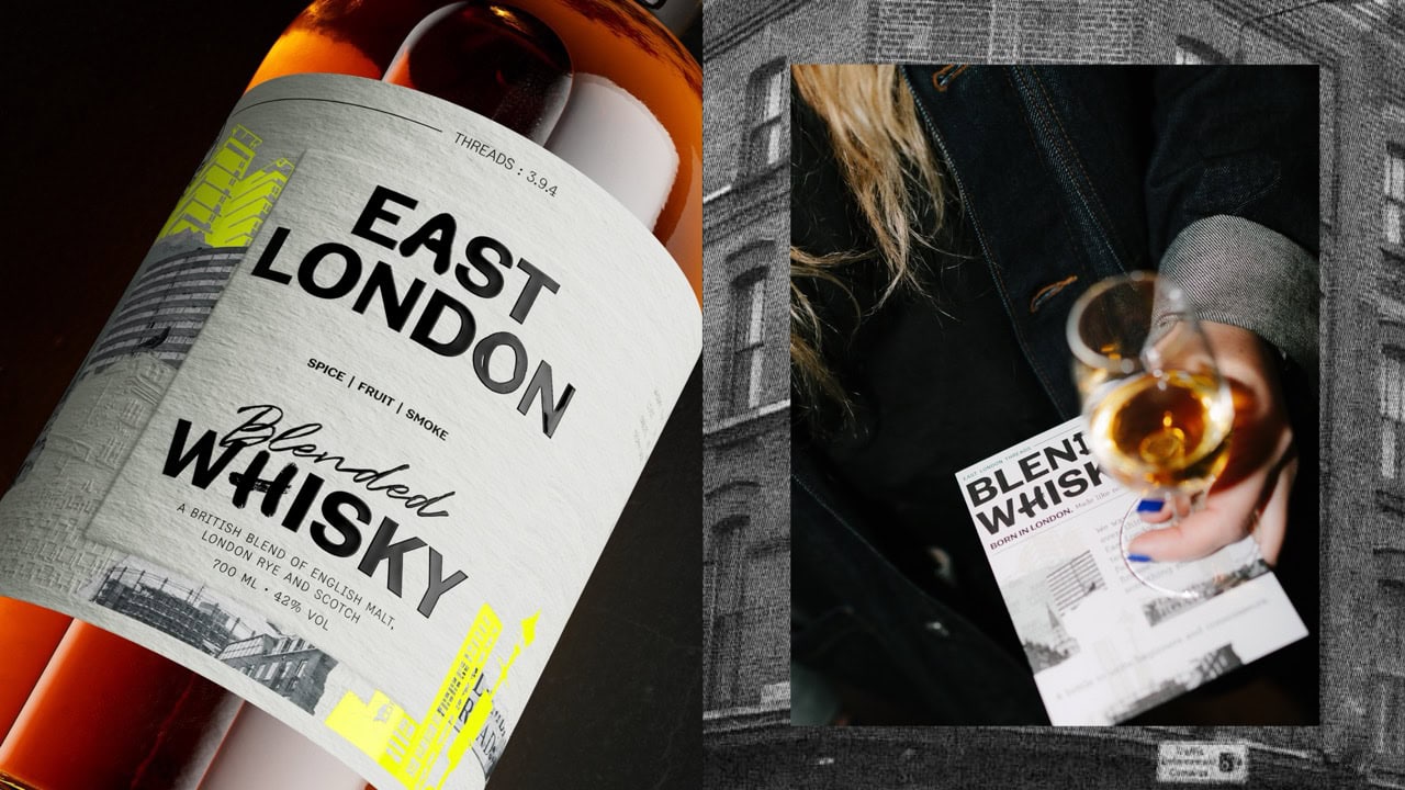 East London Liquor Company has launched East London Whisky, its first blended whisky, with a new pack design by Thirst that captures the layered character of the neighbourhood it comes from.
